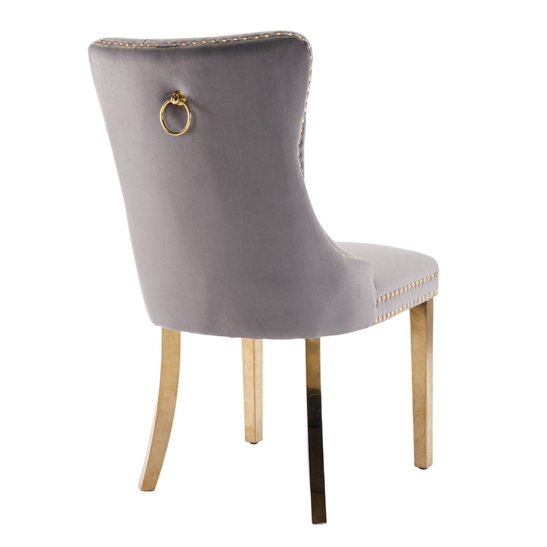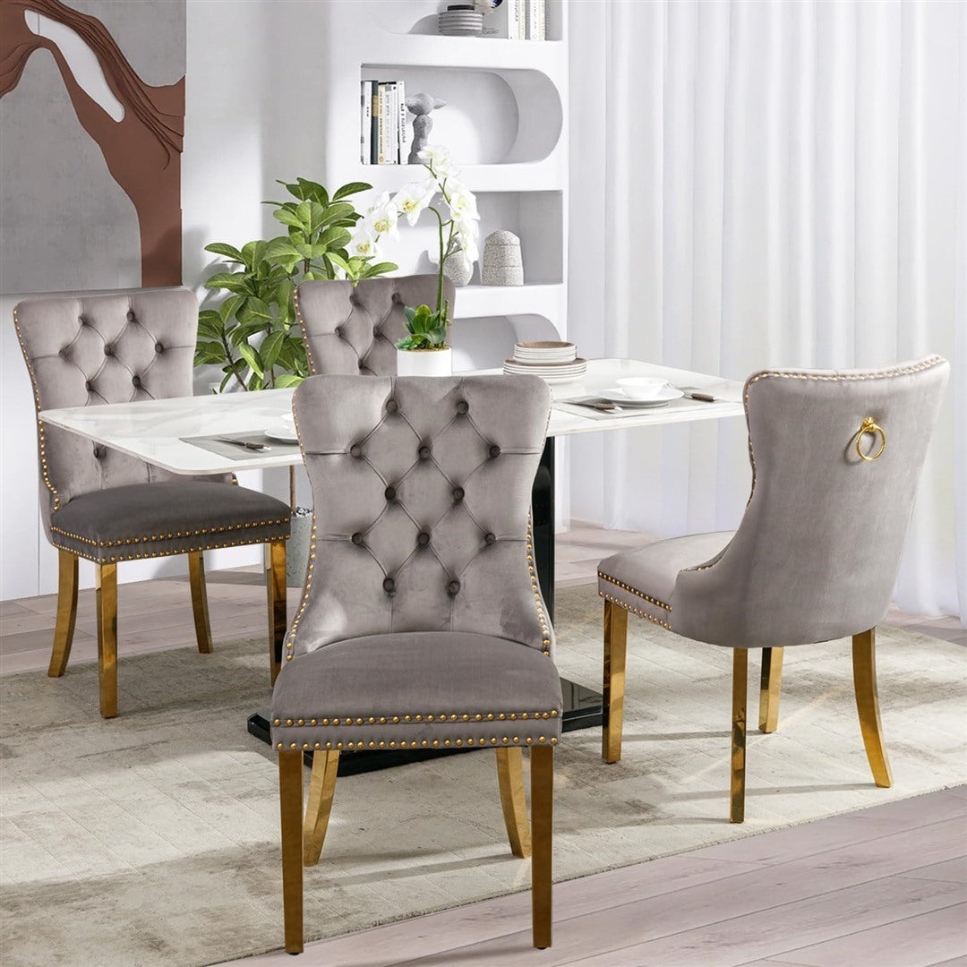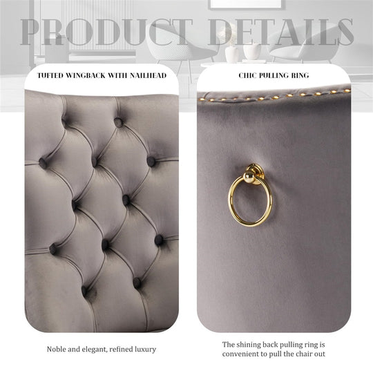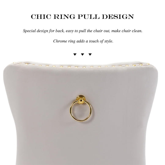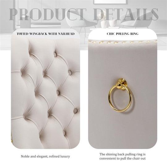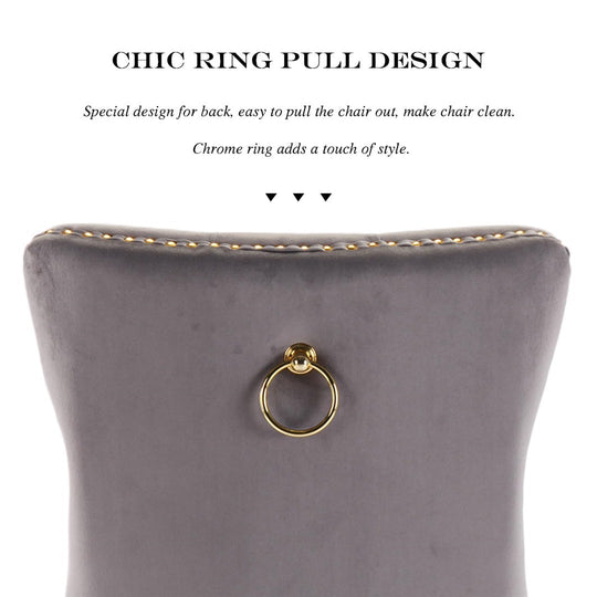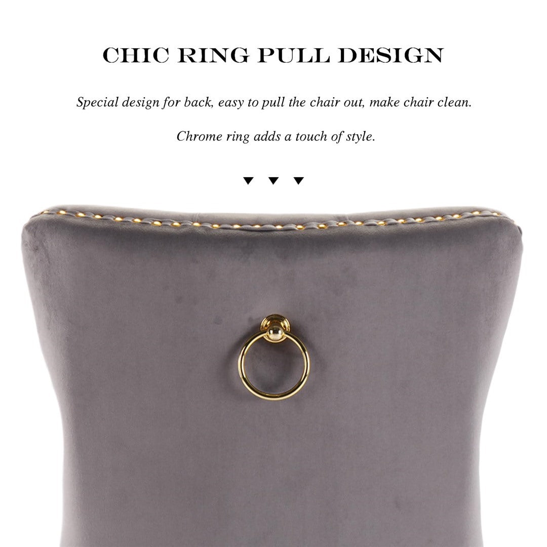 The pull-out ring on the back of the chair has a decorative effect and also helps in pulling the chair out from the table. The gold decorative studs around the cushion and backrest make the chair stand out, making it a bright spot in your home.