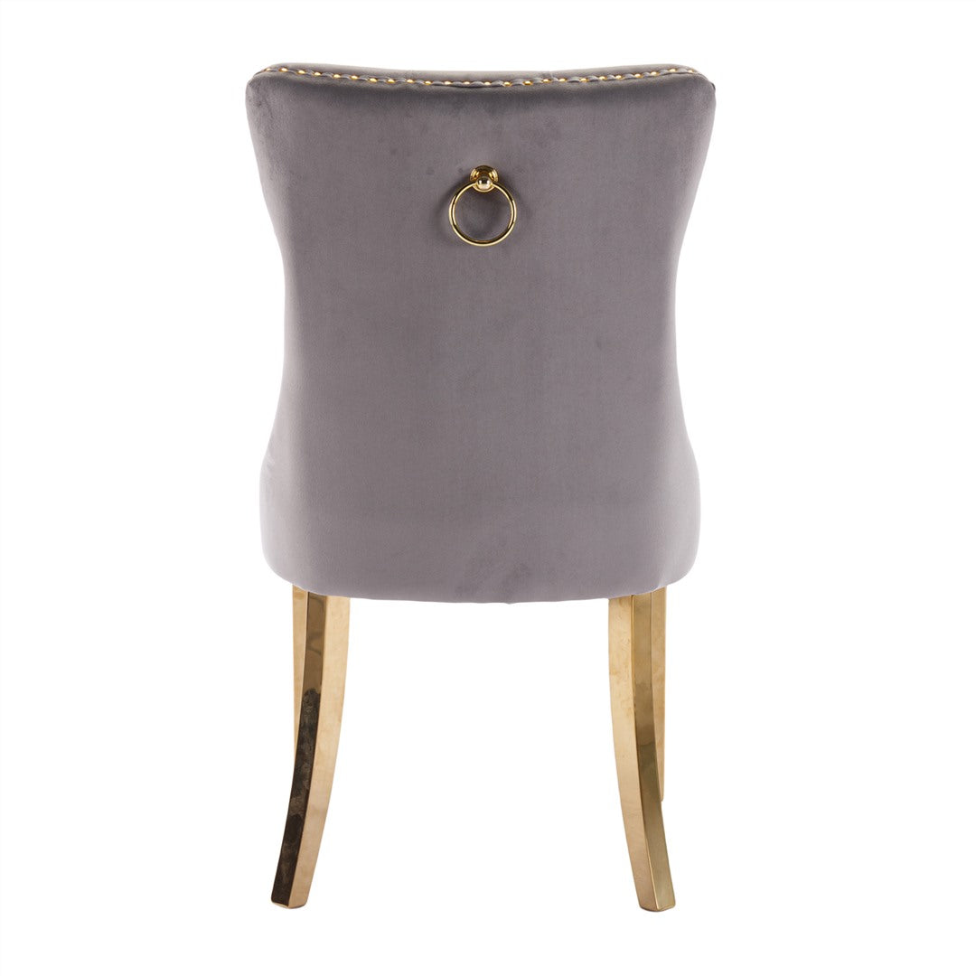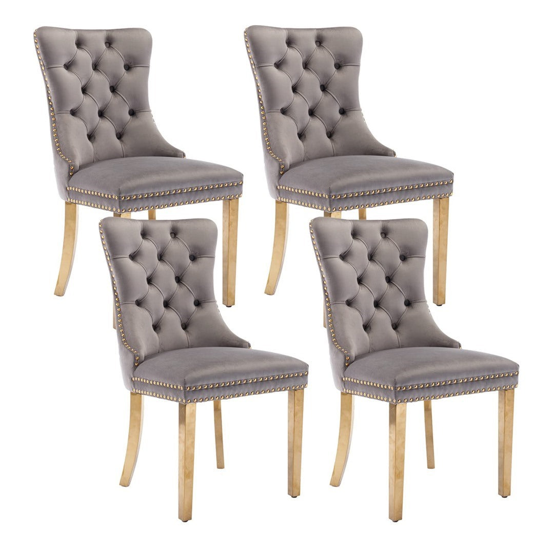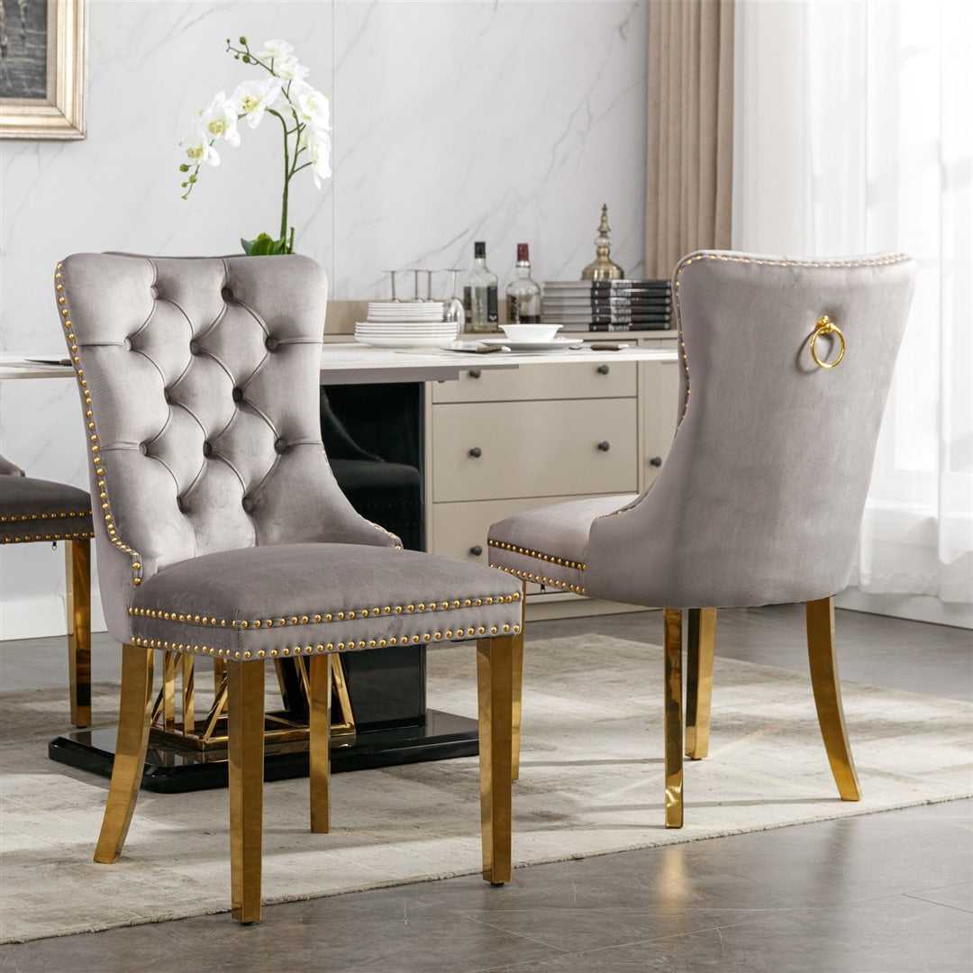 The pull-out ring on the back of the chair has a decorative effect and also helps in pulling the chair out from the table. The gold decorative studs around the cushion and backrest make the chair stand out, making it a bright spot in your home.