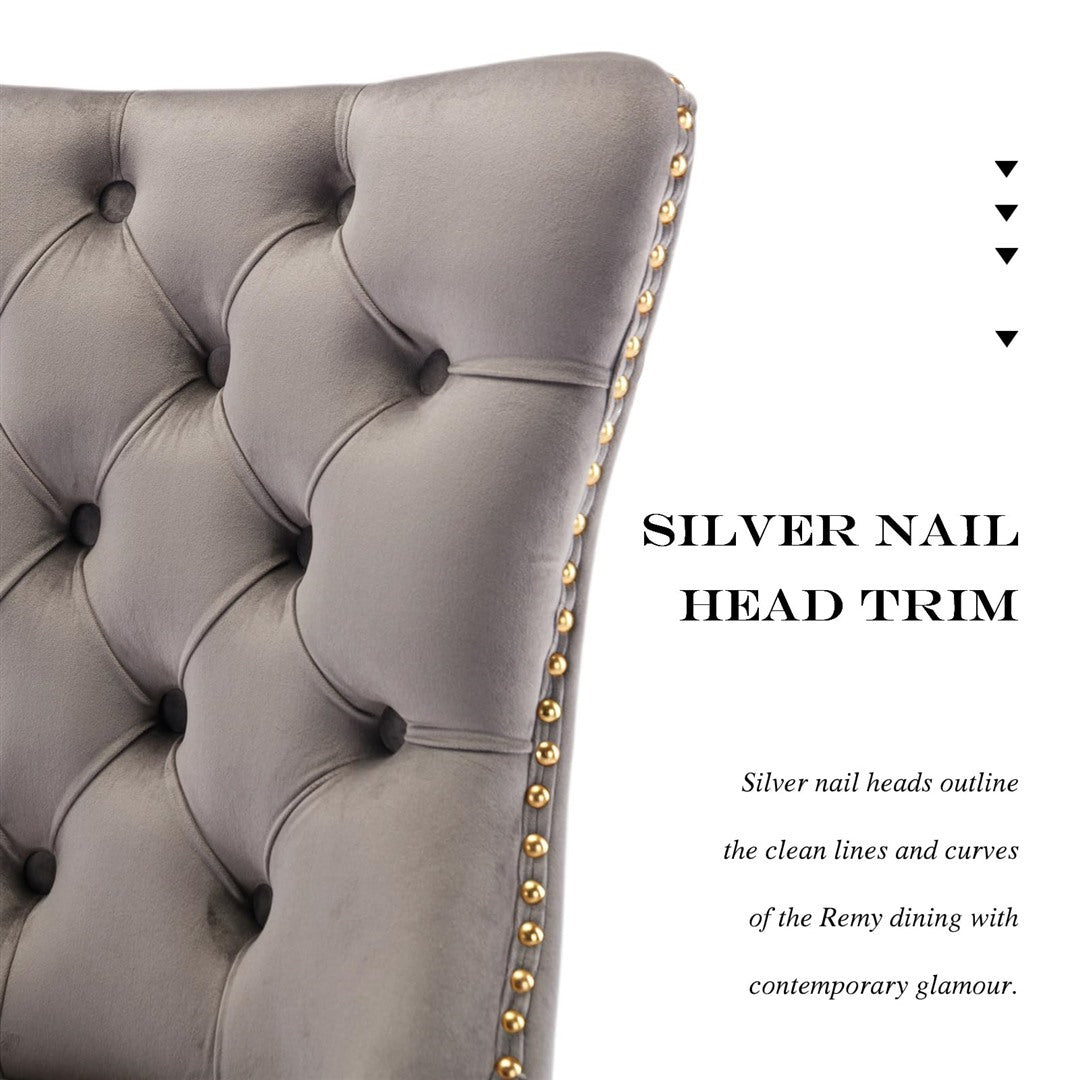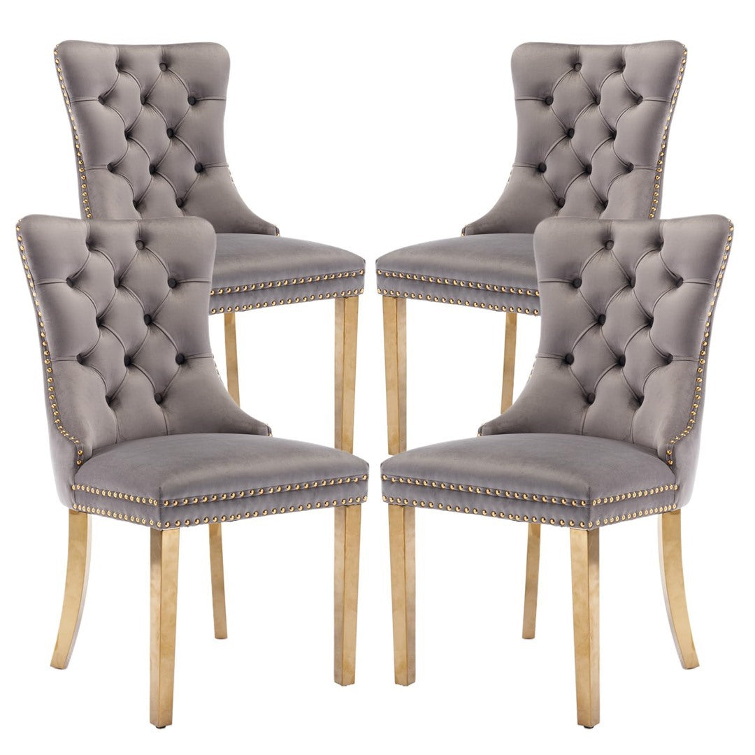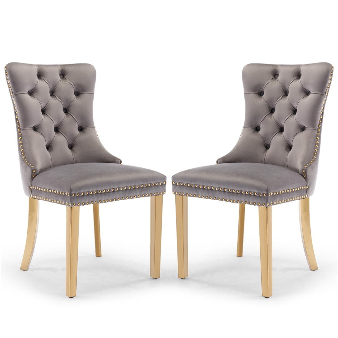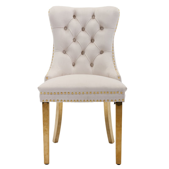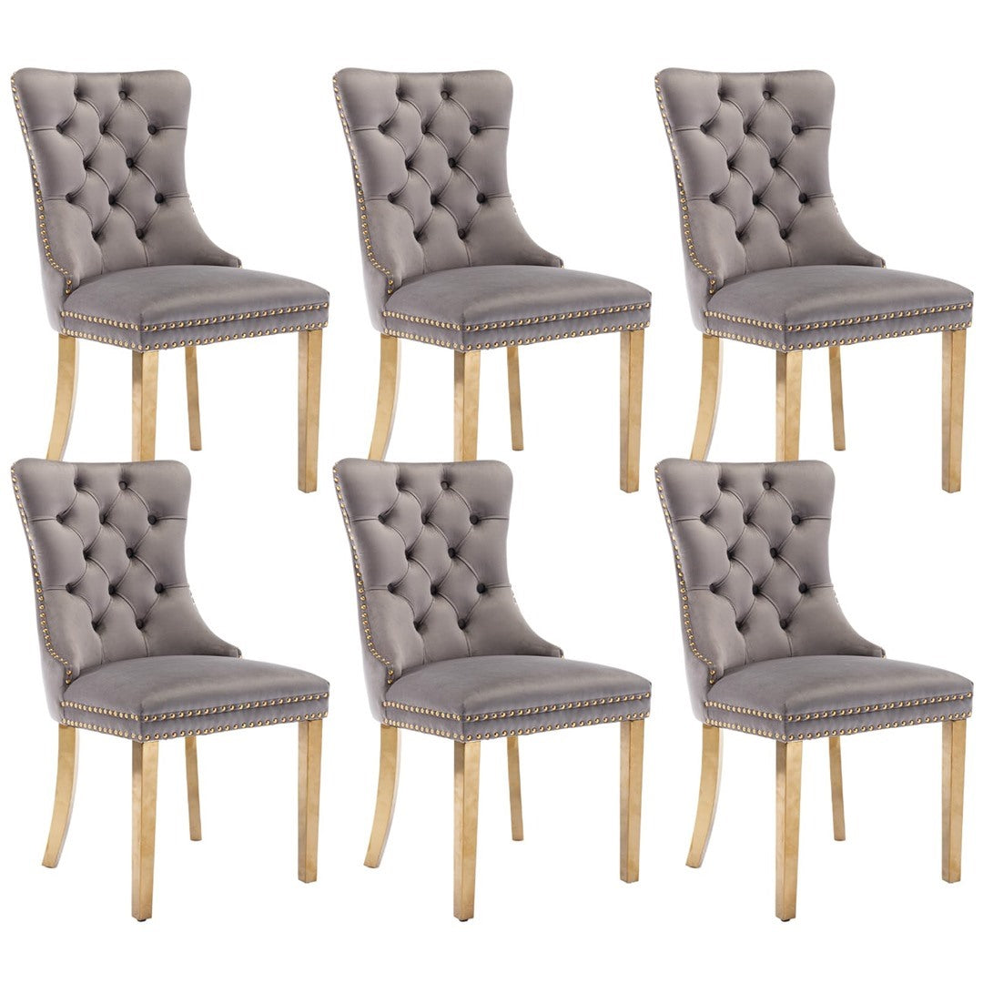 The pull-out ring on the back of the chair has a decorative effect and also helps in pulling the chair out from the table. The gold decorative studs around the cushion and backrest make the chair stand out, making it a bright spot in your home.